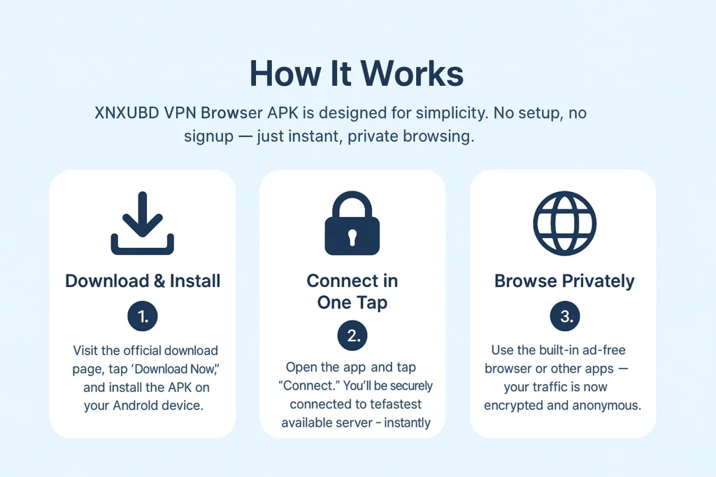 Follow these simple steps to start using XNXUBD VPN Browser APK securely on your Android device.
